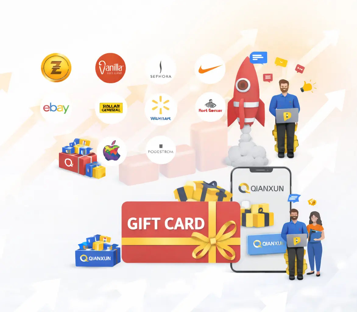 Qianxun help to redeem various gift cards at competitive rates instantly, 24/7 online with fast loading and payment service.